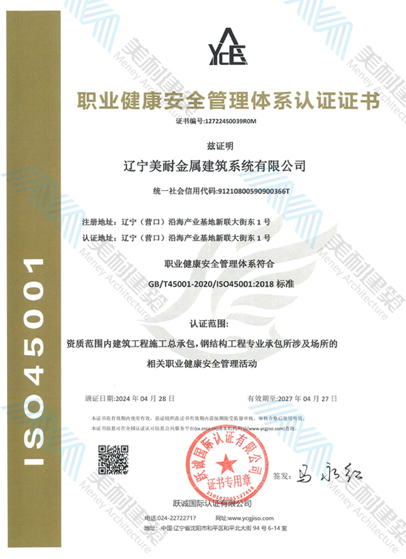遼寧美耐金屬建筑系統(tǒng)有限公司位于遼寧(營口)沿海產(chǎn)業(yè)基地,專注于預(yù)制金屬建筑系統(tǒng)領(lǐng)域,是一家集工業(yè)建筑設(shè)計(jì)、制作、施工及相關(guān)的技術(shù)咨詢與服務(wù)為一體的綜合性服務(wù)企業(yè)。作為國家鋼結(jié)構(gòu)協(xié)會(huì)會(huì)員、中國建筑金屬結(jié)構(gòu)協(xié)會(huì)會(huì)員單位與國家高新技術(shù)企業(yè),美耐建筑集建筑工程施工總承包、鋼結(jié)構(gòu)工程專業(yè)承包等多種資質(zhì)于一身,并擁有22項(xiàng)鋼結(jié)構(gòu)建筑領(lǐng)域?qū)@?項(xiàng)軟件著作權(quán)。